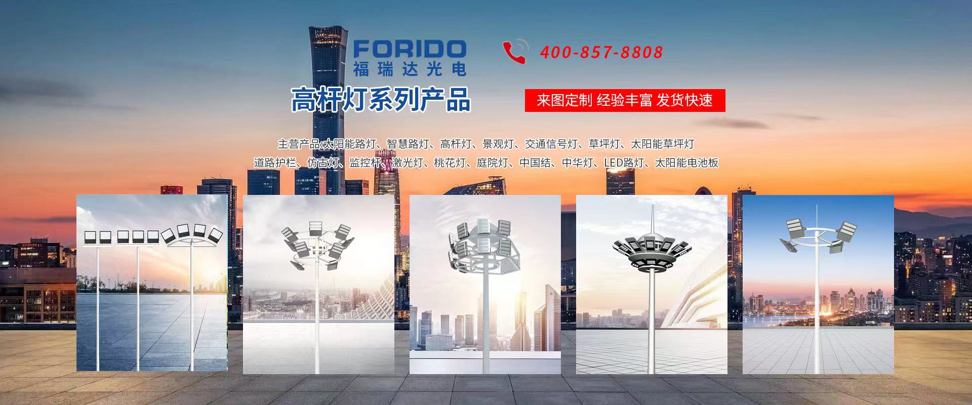 揚(yáng)州福瑞達(dá)光電科技有限公司位于淮左名都?xì)v史文化名城、中國(guó)路燈制造基地?fù)P州市北郊菱塘工業(yè)園,公司占地面積76000平方米,注冊(cè)資金10518萬(wàn)元,擁有高級(jí)技術(shù)嫻熟的員工280多人,擁有大型折彎?rùn)C(jī)、激光切割、數(shù)控注塑機(jī)、壓鑄機(jī)、自動(dòng)埋弧焊、氣焊、彩色粉末靜電噴塑等大型自動(dòng)化設(shè)備,我公司是一家集設(shè)計(jì)、研發(fā)、生產(chǎn)、銷售、施工安裝服務(wù)為一體的戶外交通照明產(chǎn)品制造商,主要生產(chǎn)智慧路燈、太陽(yáng)能路燈、LED路燈、高桿燈、景觀燈、交通信號(hào)燈、交通標(biāo)志牌、通信鐵塔、路跨鋼結(jié)構(gòu)、公交站臺(tái)、太陽(yáng)能光伏組件、景點(diǎn)亮化、樓宇亮化工程的設(shè)計(jì)施工等。公司秉承開(kāi)拓創(chuàng)新、銳意進(jìn)取、精誠(chéng)服務(wù)的企業(yè)精神,堅(jiān)持以“誠(chéng)信為本、技術(shù)為先、服務(wù)是金”的合作理念,我們憑借先進(jìn)的制造工藝、優(yōu)質(zhì)的產(chǎn)品質(zhì)量、合理的市場(chǎng)價(jià)格和完善的售后服務(wù)贏得了廣闊的市場(chǎng)和客戶的信賴。  我公司已通過(guò)ISO9001質(zhì)量體系認(rèn)證、ISO14001環(huán)境管理體認(rèn)證,CQC產(chǎn)品認(rèn)證,中國(guó)節(jié)能產(chǎn)品認(rèn)證,通過(guò)“CCC”強(qiáng)制性產(chǎn)品認(rèn)證,具有市政總承包,照明,交安,設(shè)計(jì)等資質(zhì)···